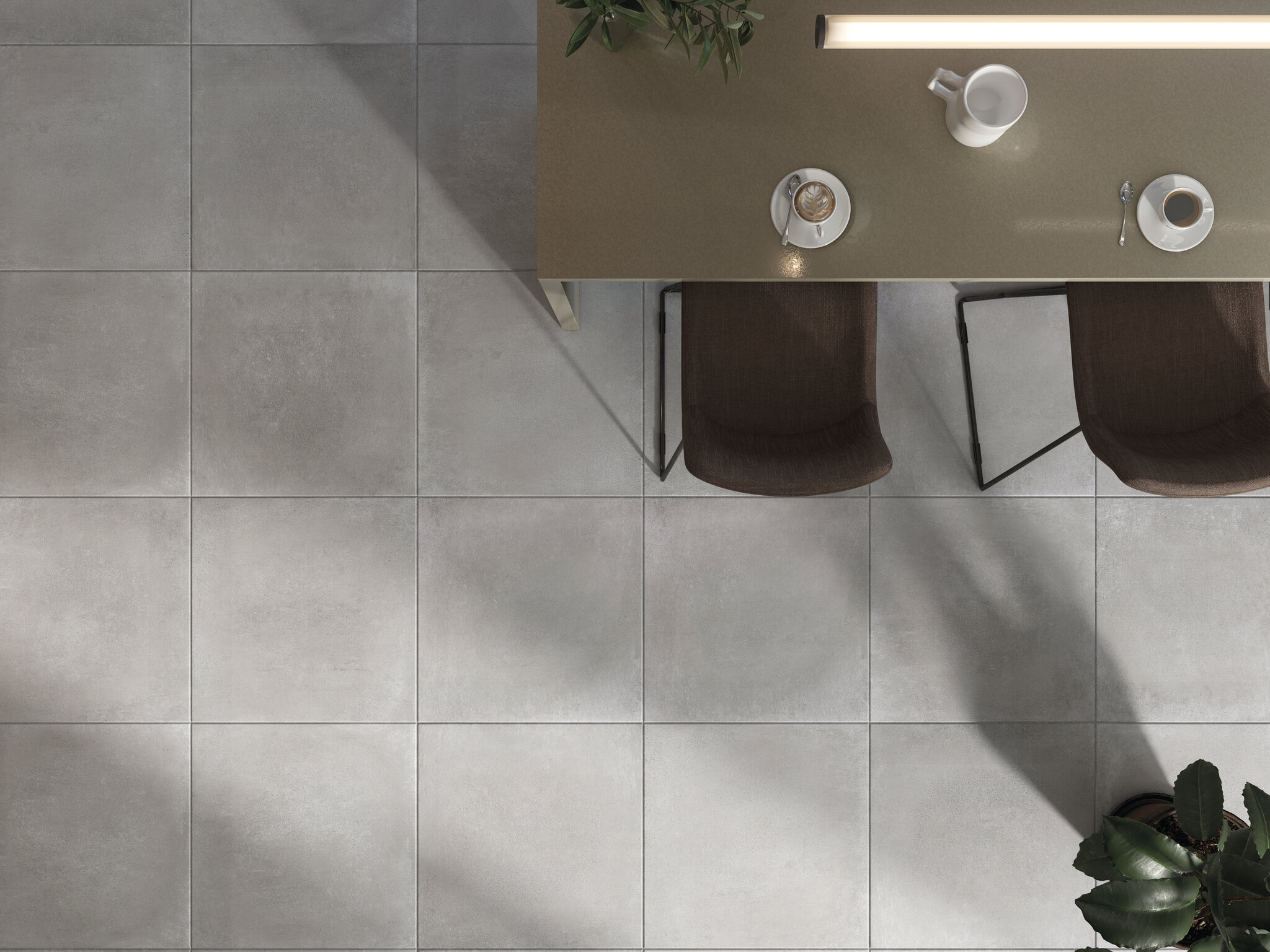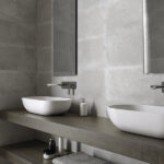 The concrete design shines in this indoor stoneware floor tile that makes up the Beton collection. These porcelain tiles are available in three different shades, ideal for adding serenity and calm to interior spaces.