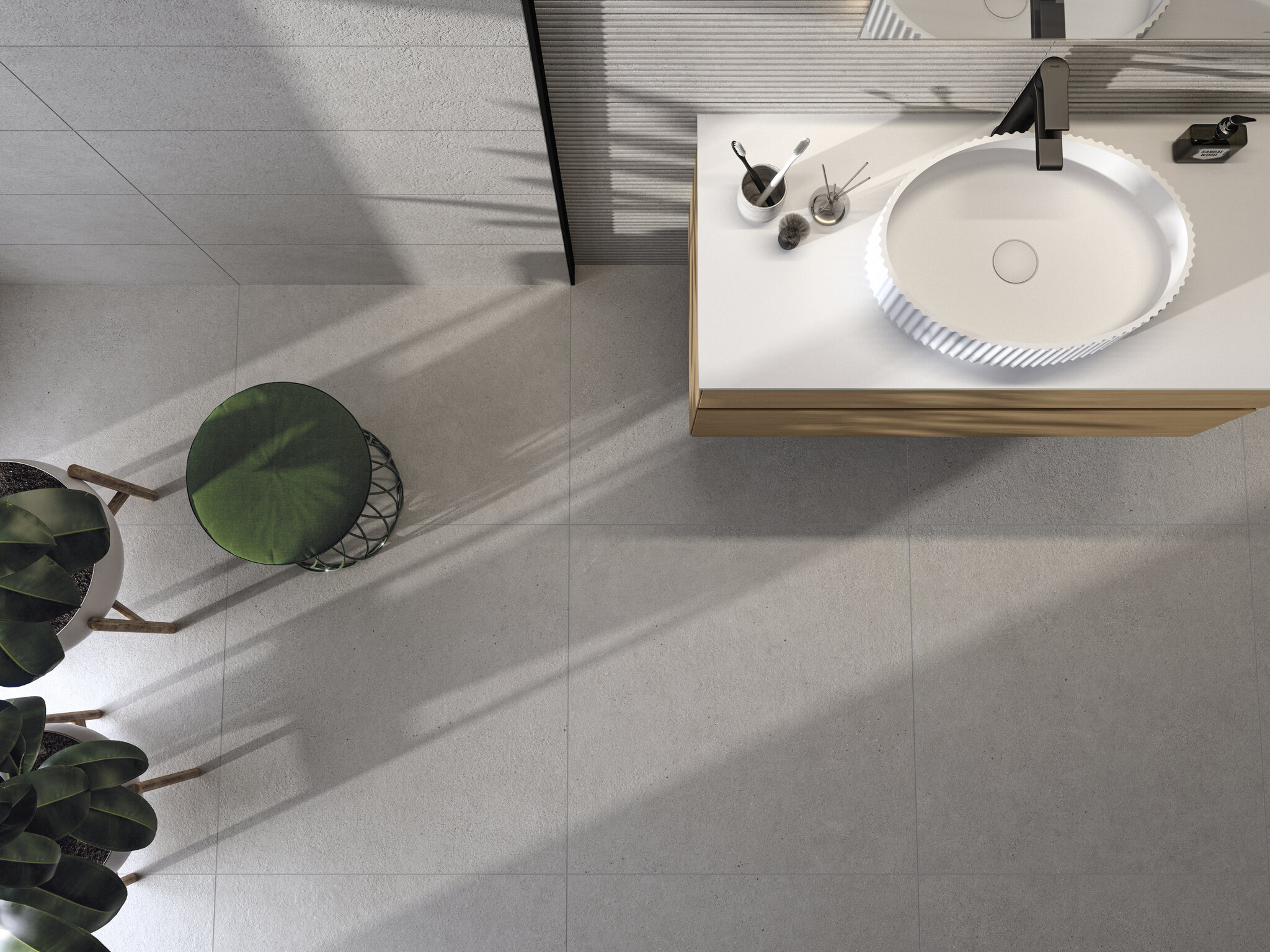 The Borneo series opens the door to highly customisable cement design tiles. There are three colours available, White, Pearl and Sand, with variations that provide relief to enhance the decorative character of the pieces. Its neutral tones are easily combined on the walls of any type of room, as well as on kitchen backsplashes.