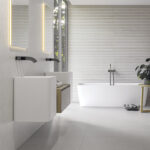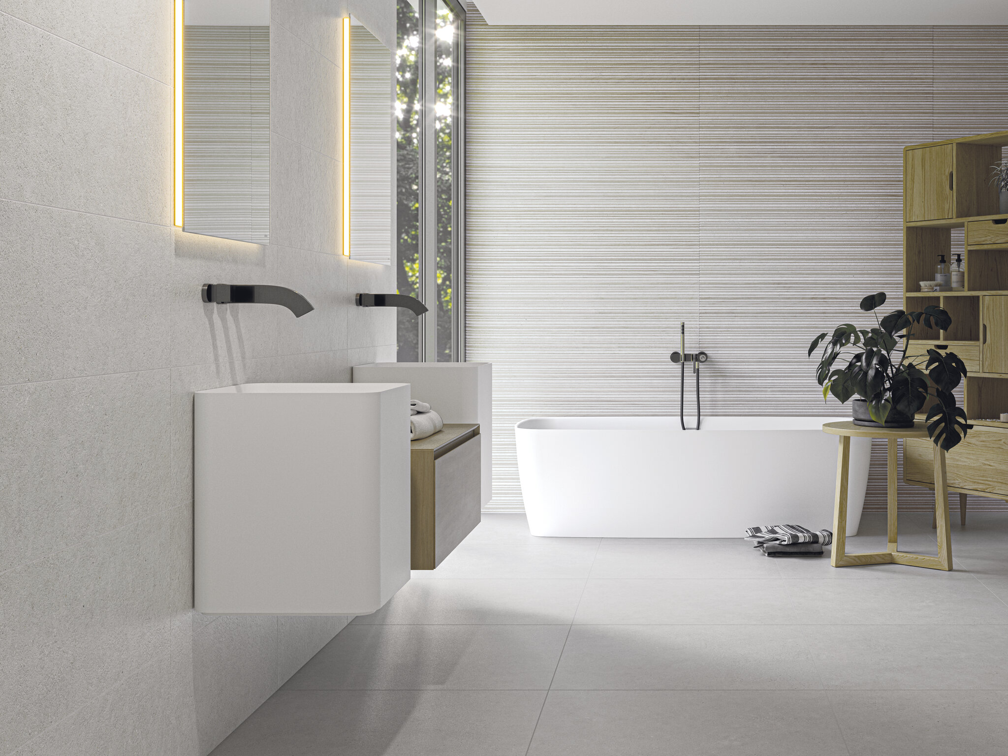The Borneo series opens the door to highly customisable cement design tiles. There are three colours available, White, Pearl and Sand, with variations that provide relief to enhance the decorative character of the pieces. Its neutral tones are easily combined on the walls of any type of room, as well as on kitchen backsplashes.