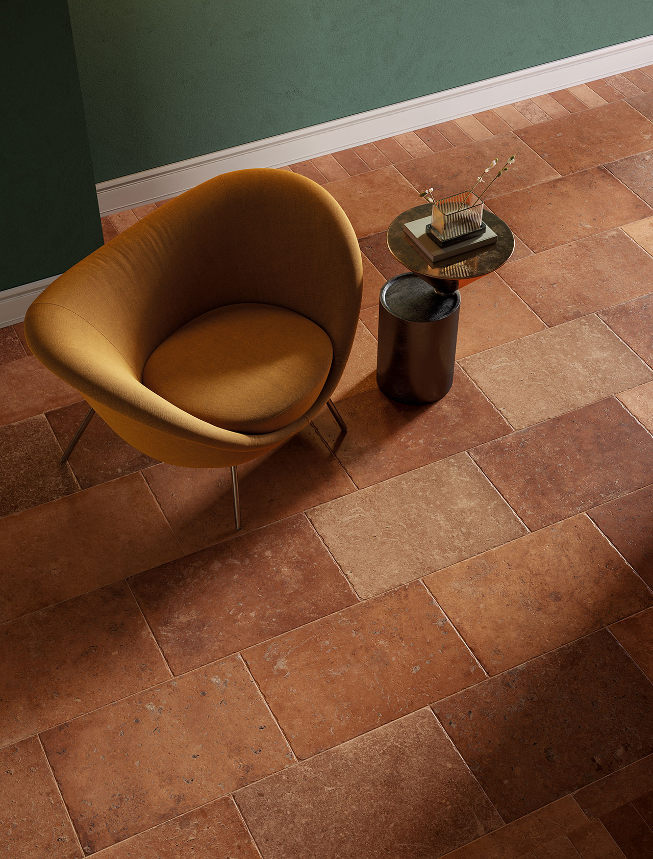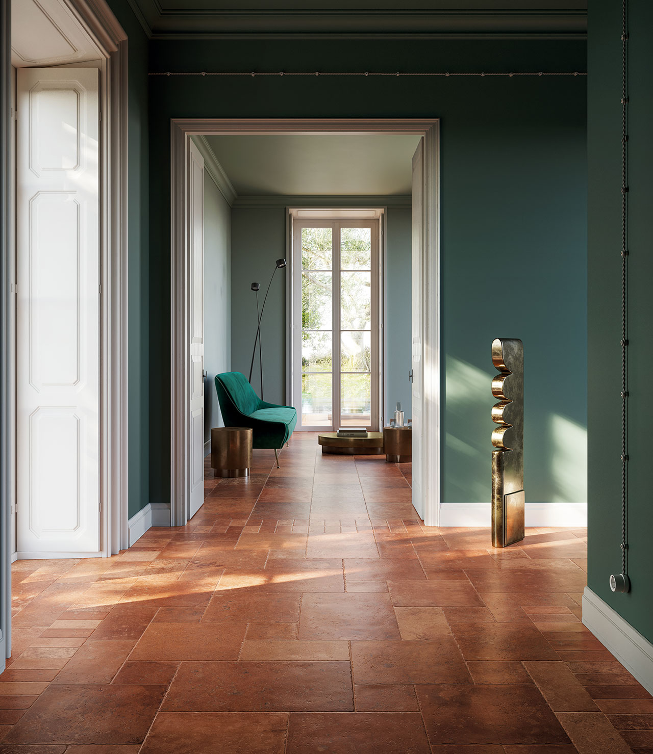 Cotto reintroduces terracotta ceramics suitable for indoor and outdoor use, to be interpreted according to new architectural languages. With a 10mm thick surface system, the collection displays a rich mashup of earthy colours, besides mixed cement tile decorations.