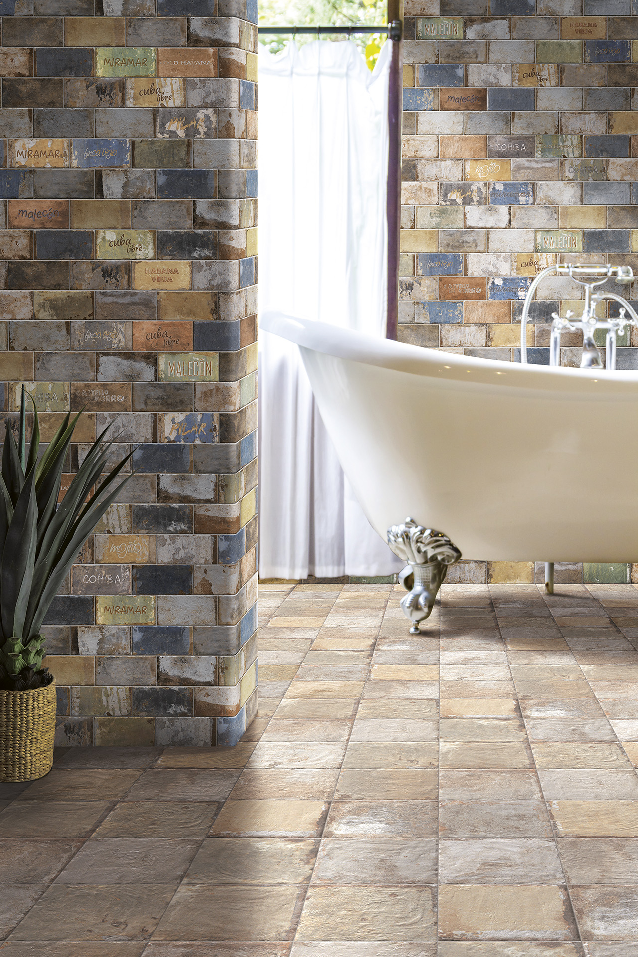 Warmth, colour and craftsmanship. The technological characteristics of this glazed porcelain stoneware – available in five sizes, six shaded colours and numerous designs, reinterprets the South American atmosphere in a modern key.
