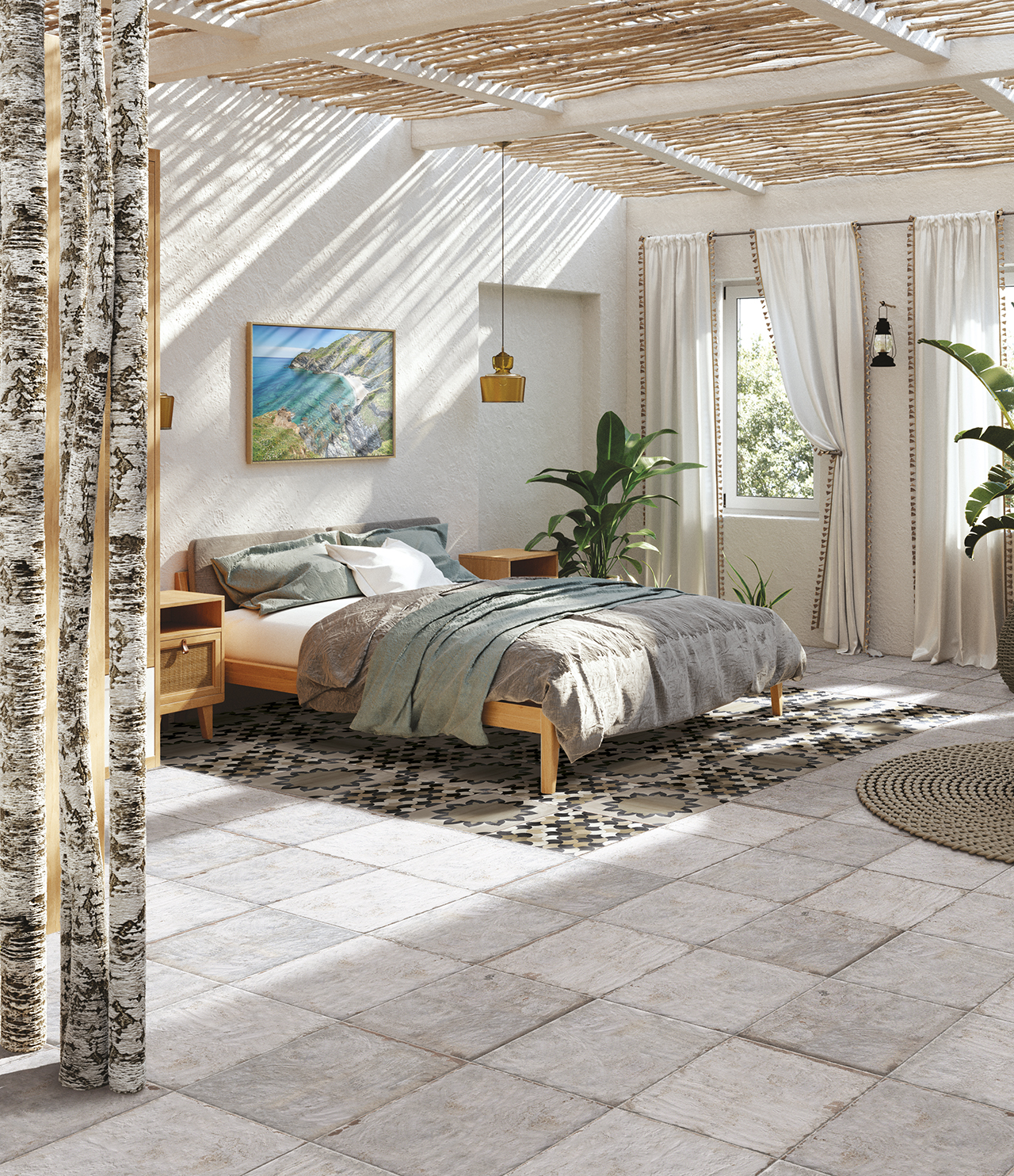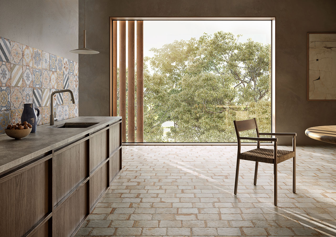 Warmth, colour and craftsmanship. The technological characteristics of this glazed porcelain stoneware – available in five sizes, six shaded colours and numerous designs, reinterprets the South American atmosphere in a modern key.