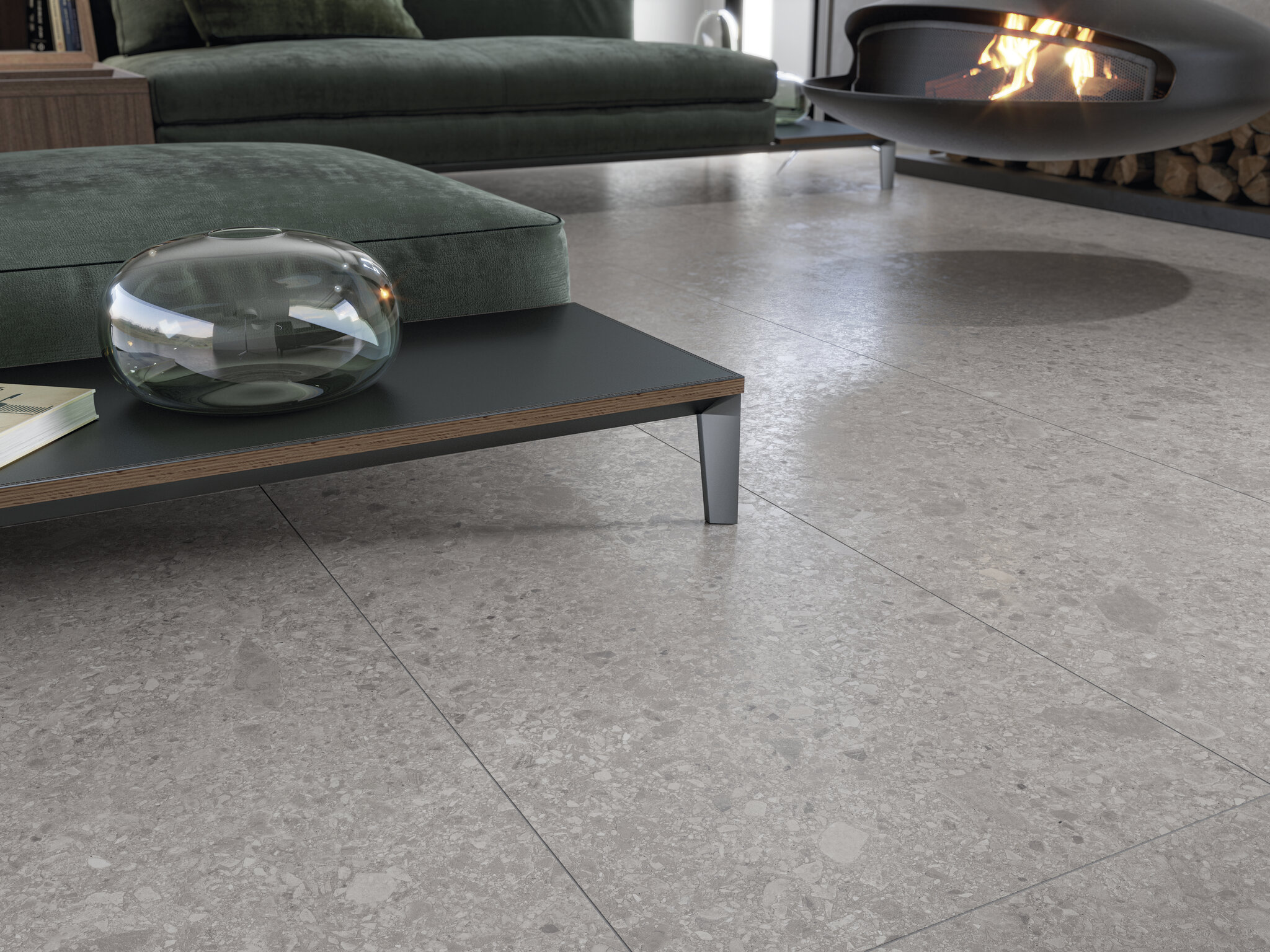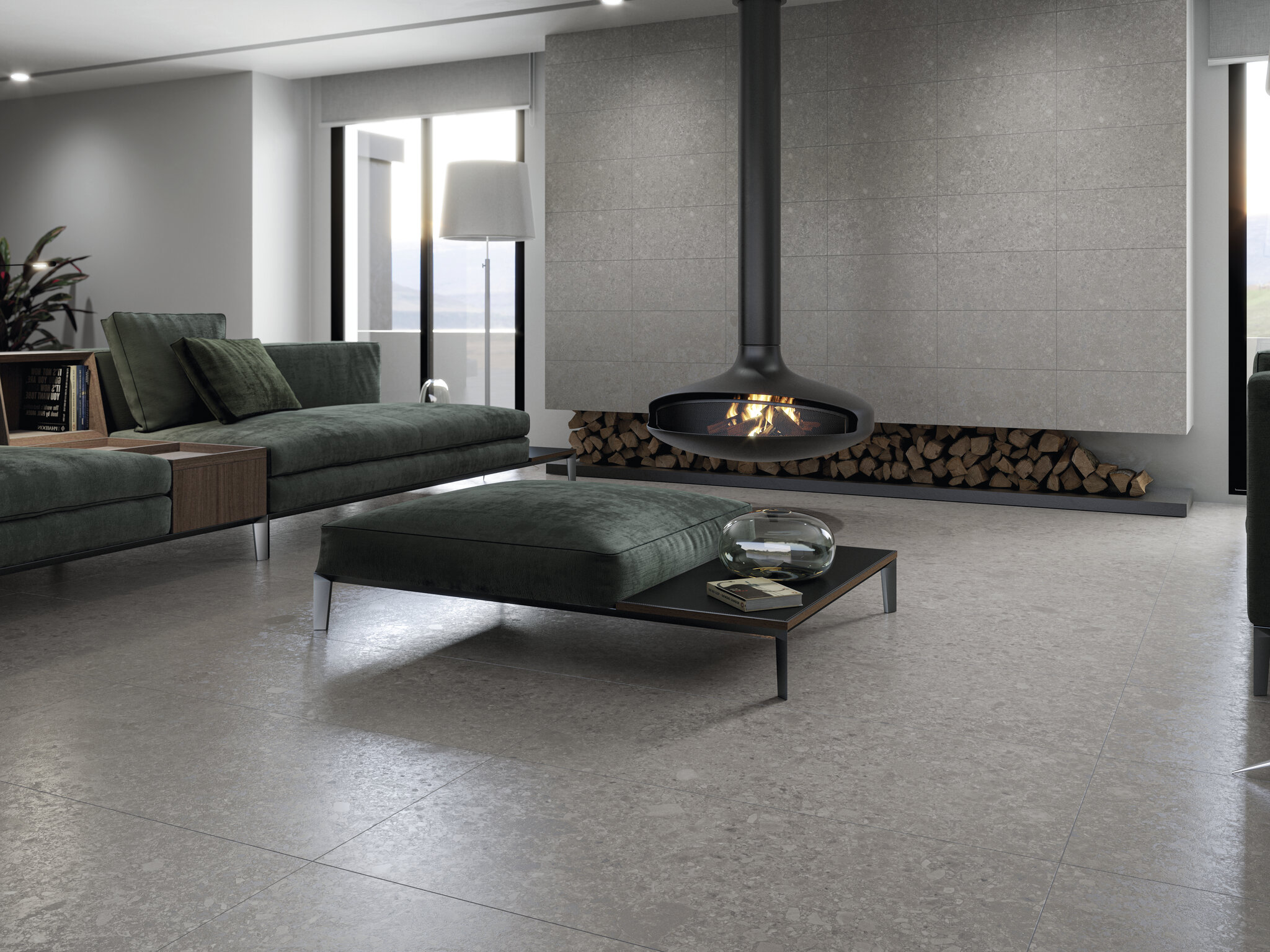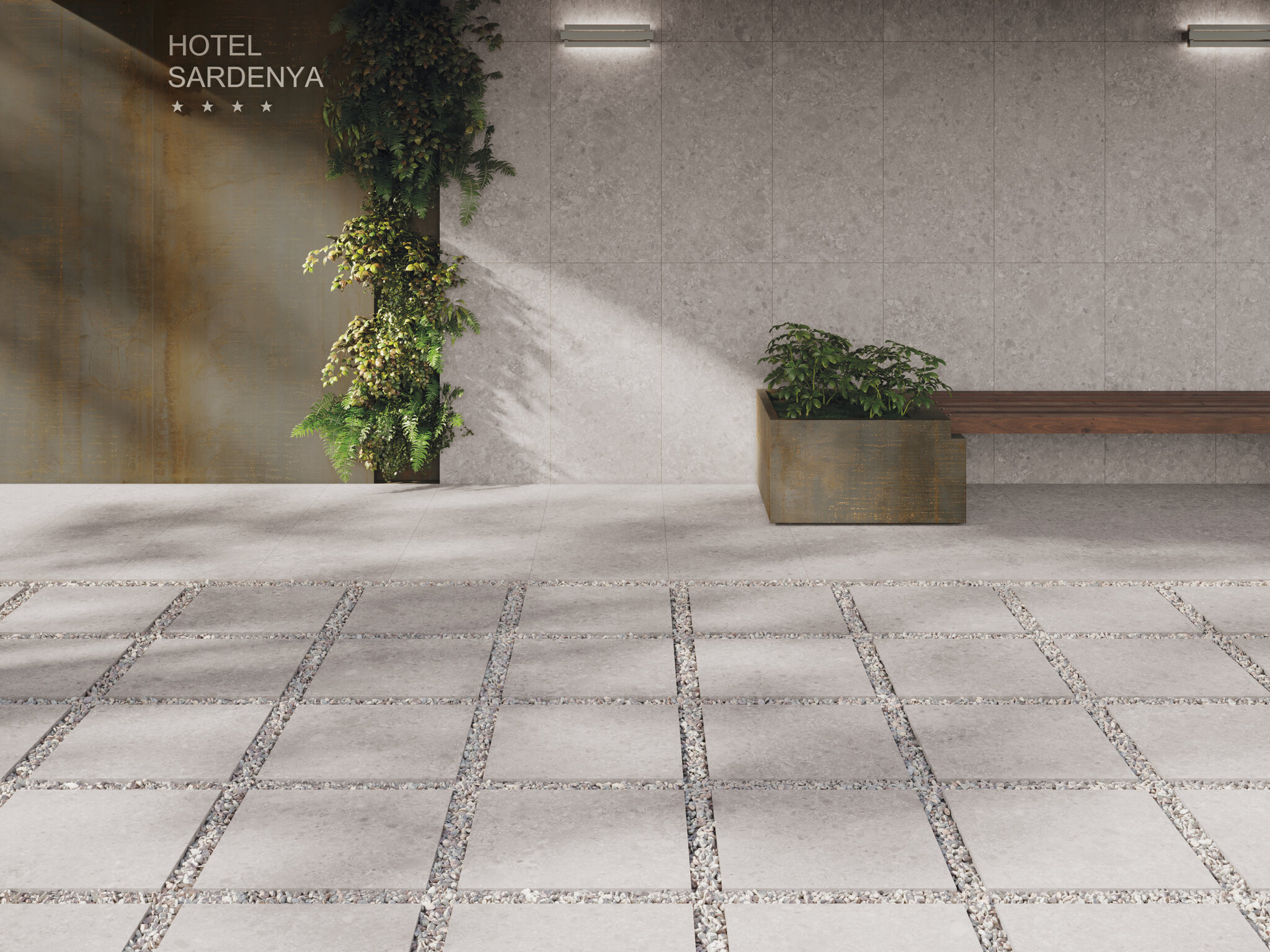 The design of this porcelain collection plays with various natural stones of different sizes and colour intensity that are embedded on a neutral background. It is available in three different shades with a matt finish and three formats to adapt to all types of styles.
