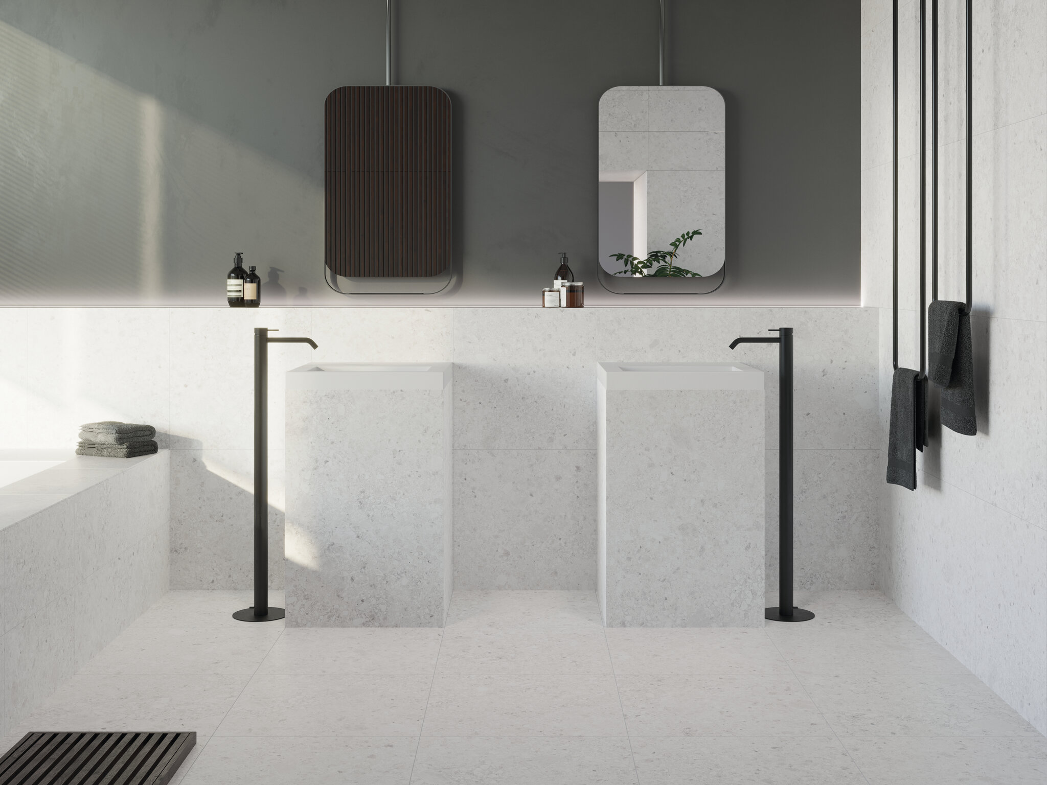 The design of this porcelain collection plays with various natural stones of different sizes and colour intensity that are embedded on a neutral background. It is available in three different shades with a matt finish and three formats to adapt to all types of styles.