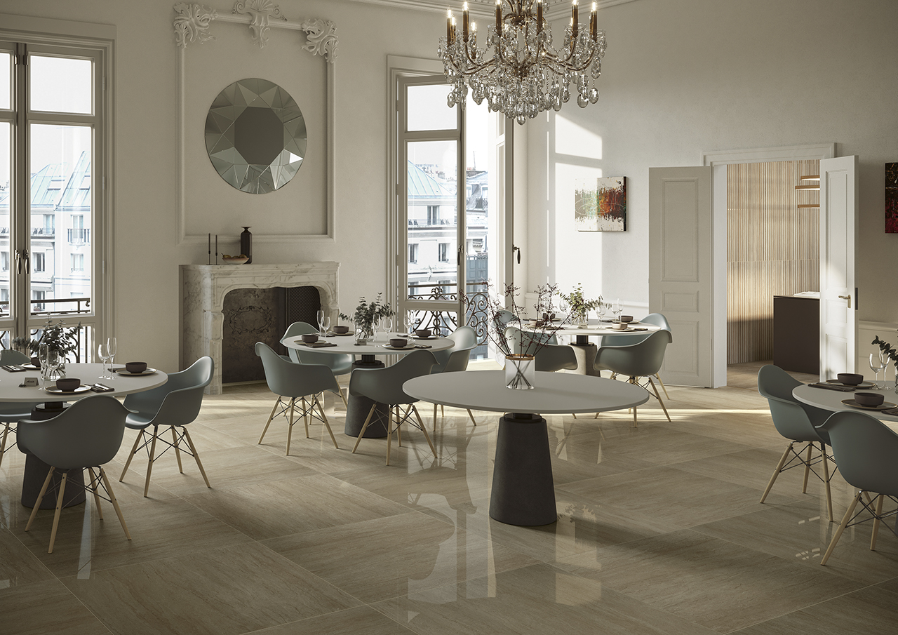 The unique beauty of travertine marble transfers the concept of classic elegance to modern architecture. The decorative and aesthetic value of the Travertini Due surfaces makes them suitable for use on both walls and on floors through an analysis of exquisite modular and multiple-size installation layouts.
